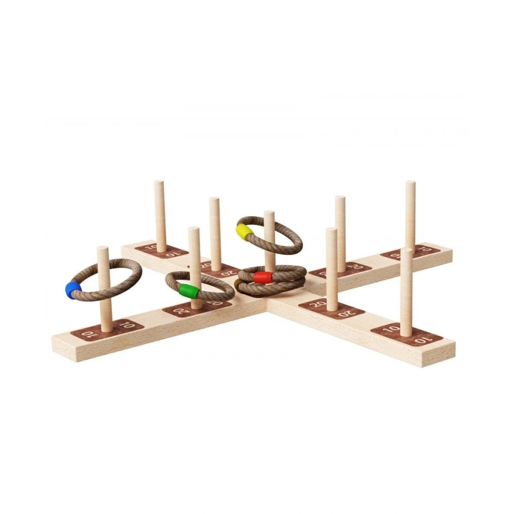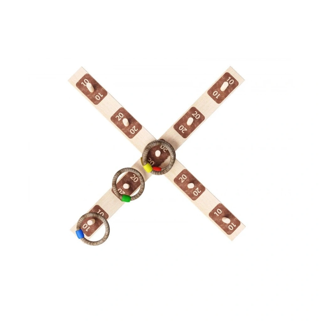 Belirli bir mesafe belirlenir. Mesafe belirlendikten sonra 5 adet halkayı tek tek oyun tablasına atın. Oyun tablası üzerinde 10-20-50 rakamları bulunan çubuktan halkayı geçirirseniz o kadar puan kazanırsınız. çocukların el-göz koordinasyonunu geliştirir.